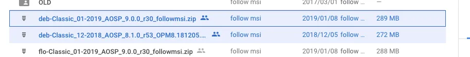 - Android 9のflo(WiFi用)はあるようです。2019年1月2日に作られた模様。