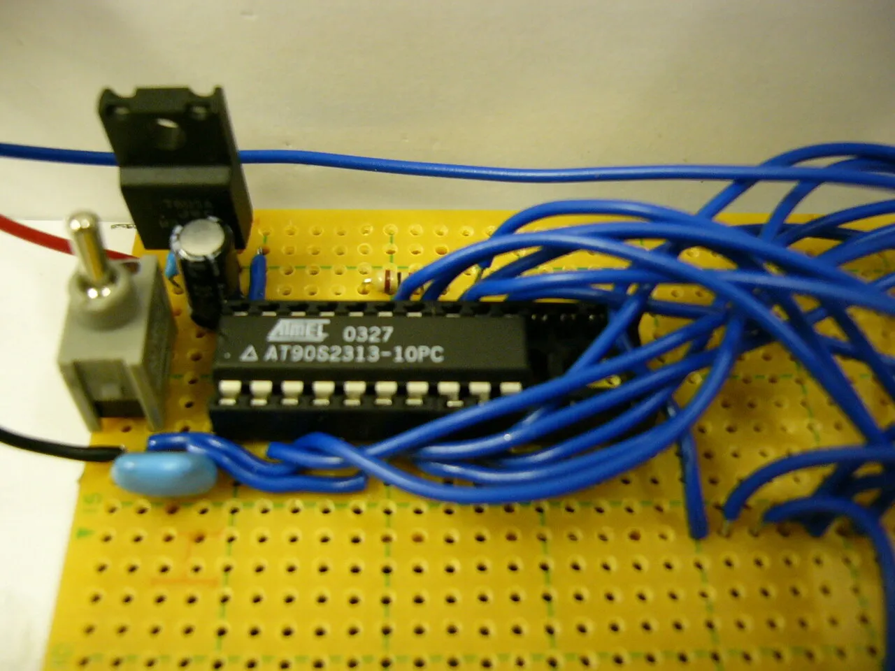 まぁ,なんだかんだで,最終発表の前々日に,やることを決めました. その名も,「ゴルゴ13養成マシーン」. エアガンでねらった的を打つゲームです. ATMELのICで開発しています。
