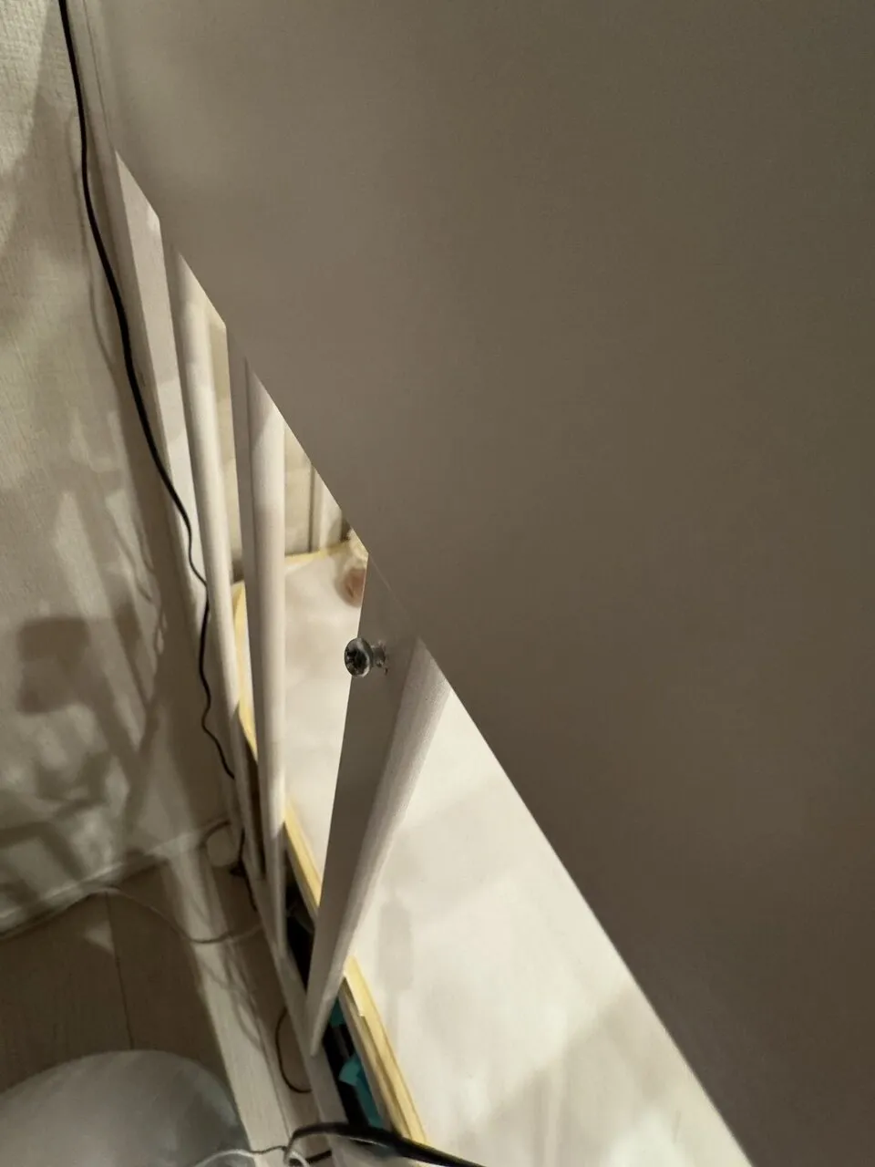 Google Nest Miniをベビーベッドに設置するとかなりQoLが高まります。設置には家に余っていた木ネジを使ってベビーベッドに打ち付けて、そこにNest Miniを引っ掛けます。