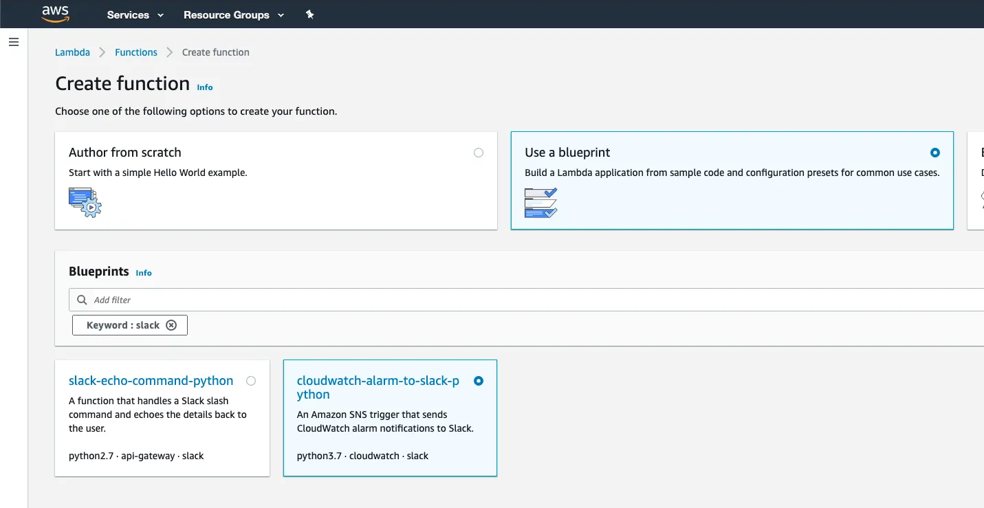 Blueprintはこちら。cloudwatch-alarm-to-slack-python