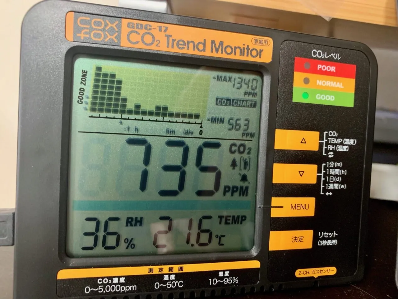自宅でも仕事をするのでCO2モニタを設置した。いくつかわかったこと: