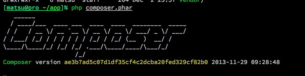 % curl -sS https://getcomposer.org/installer | phpcomposer.pharというファイルが作成されます。