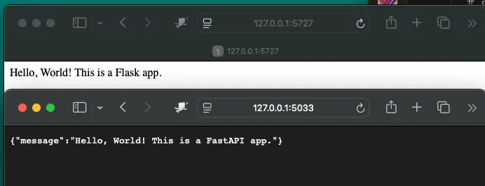 Flask App: http://127.0.0.1:5727 FastAPI App: http://127.0.0.1:5033