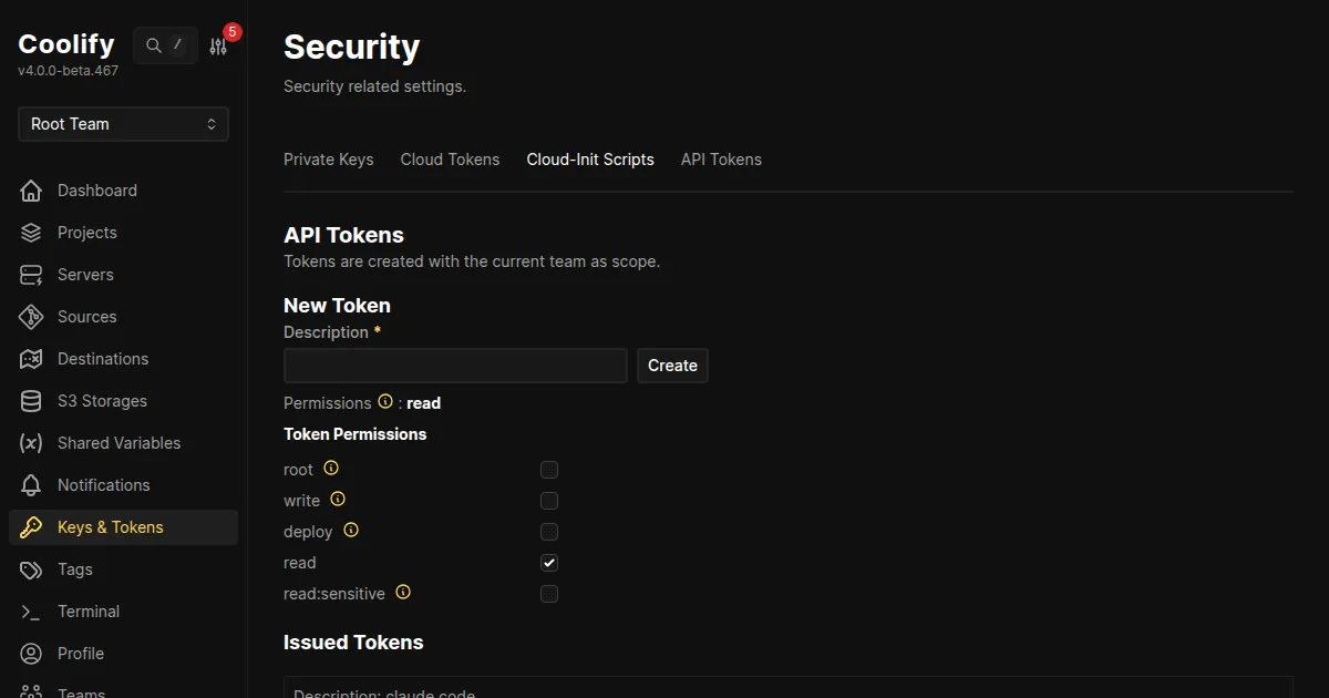 | API Token | Coolifyの Settings > API Keys から生成 |