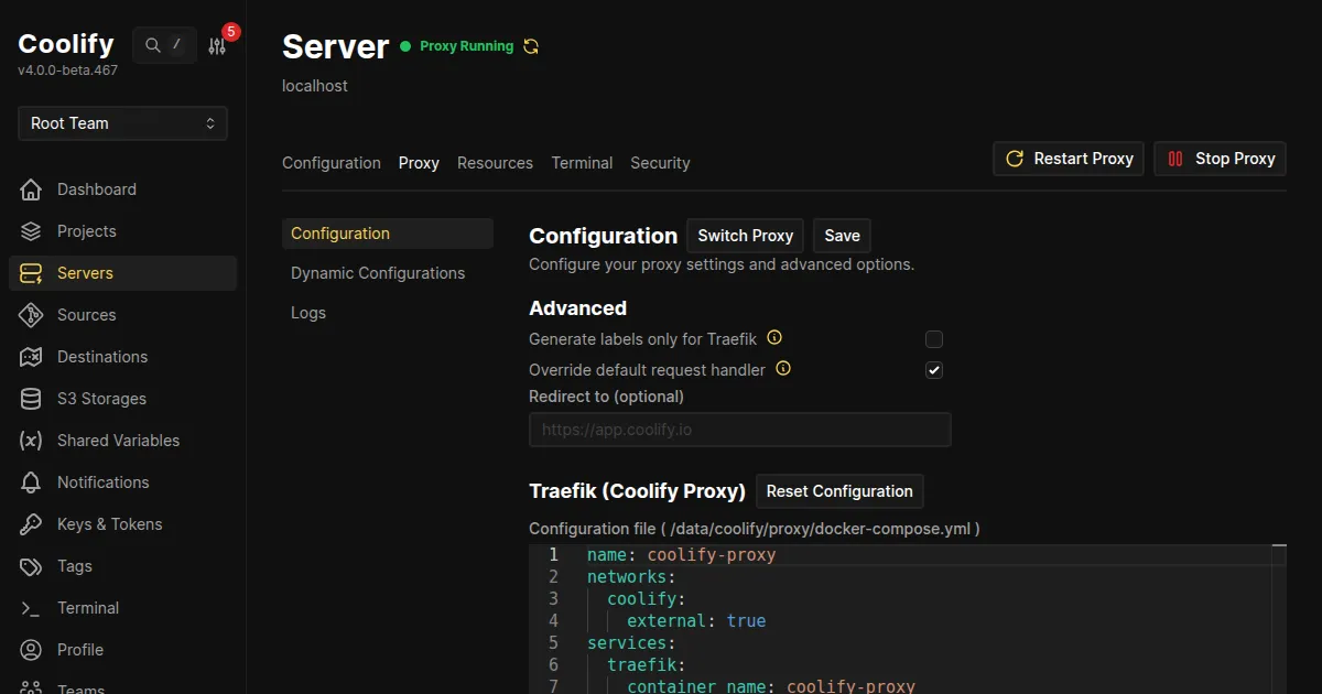 ここでハマりポイントがあります。CoolifyのドメインはHTTP(http://)で設定する必要がある。