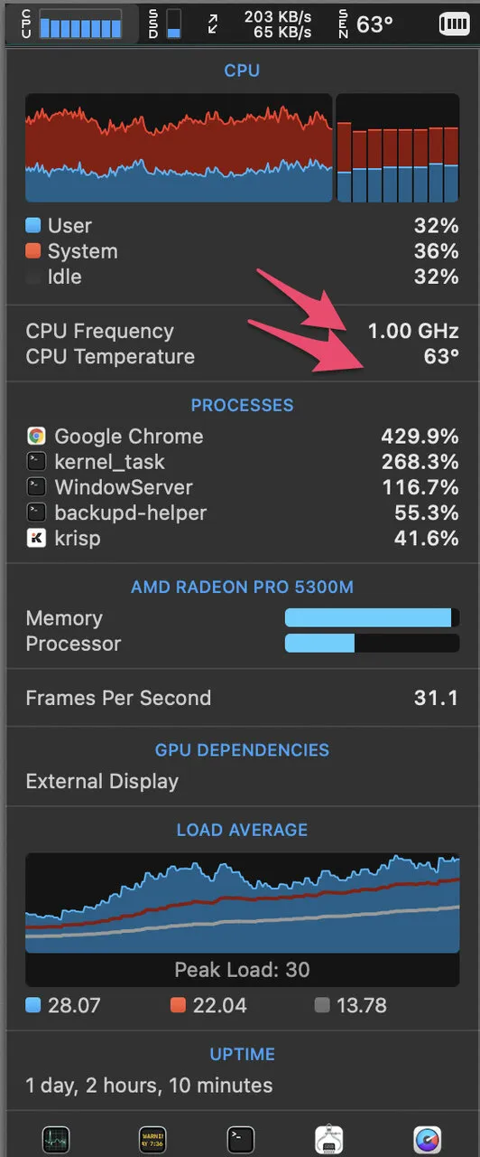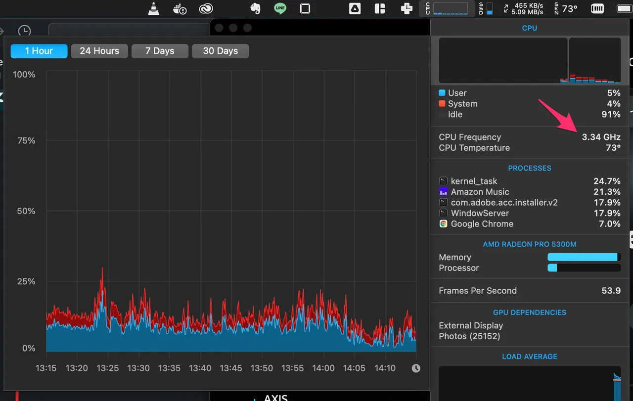 - iStats menuを使っていない場合は問題に気づけなかった気がします。これから夏にかけて温度が上がっていくのでクロック数は注意したほうが良いです。