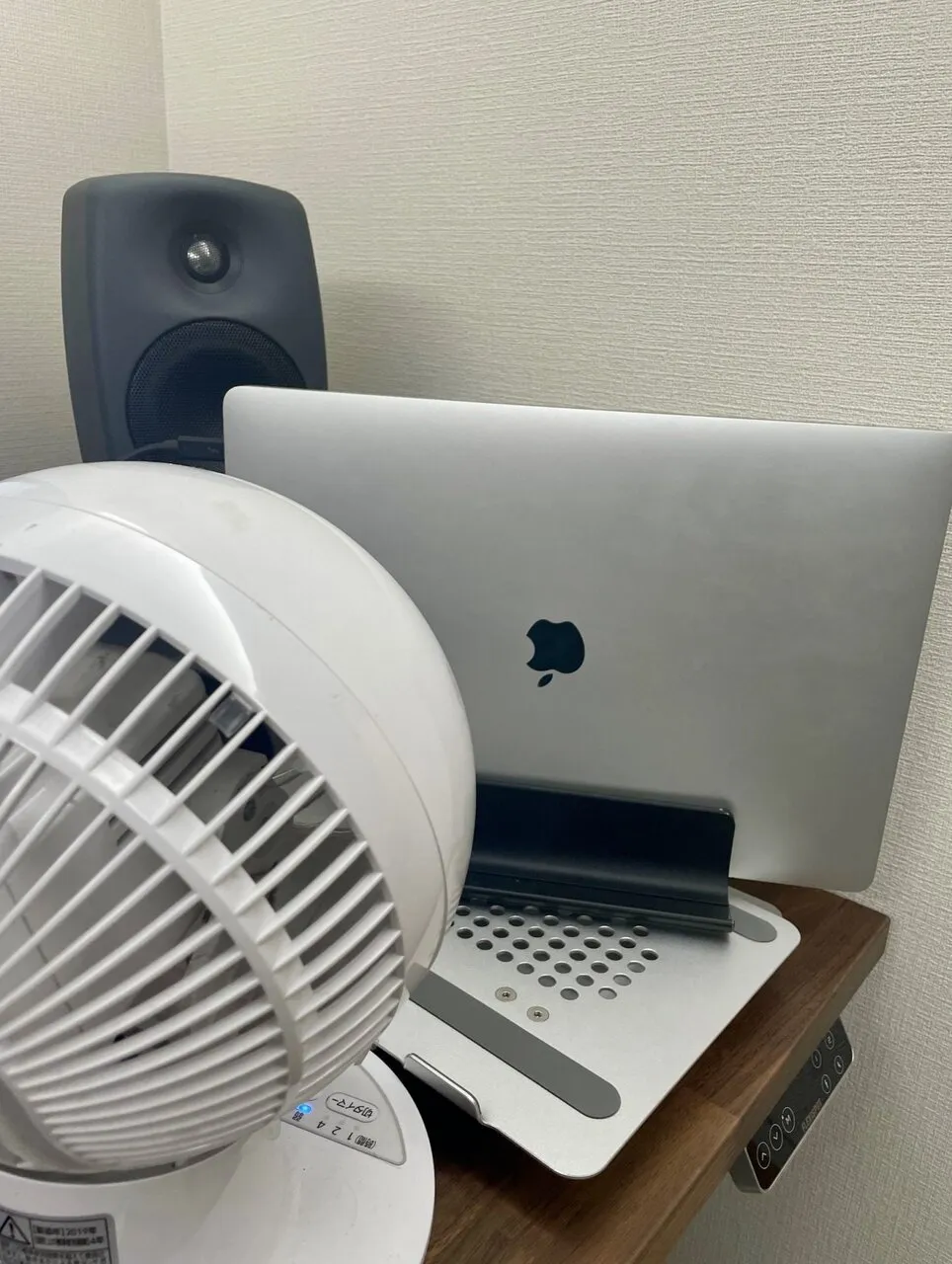 扇風機で冷やしている様子。見た目はダサいが、これで問題は解決された。背に腹は代えられない。