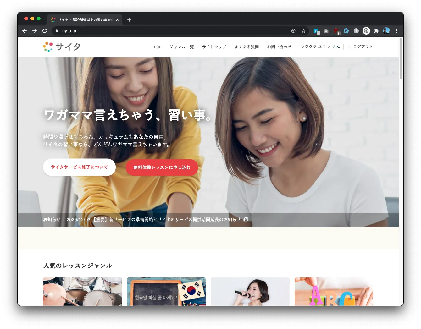- 2007年頃〜2011年ごろまで私がシステムを開発していたサービスが終わるとのことです。