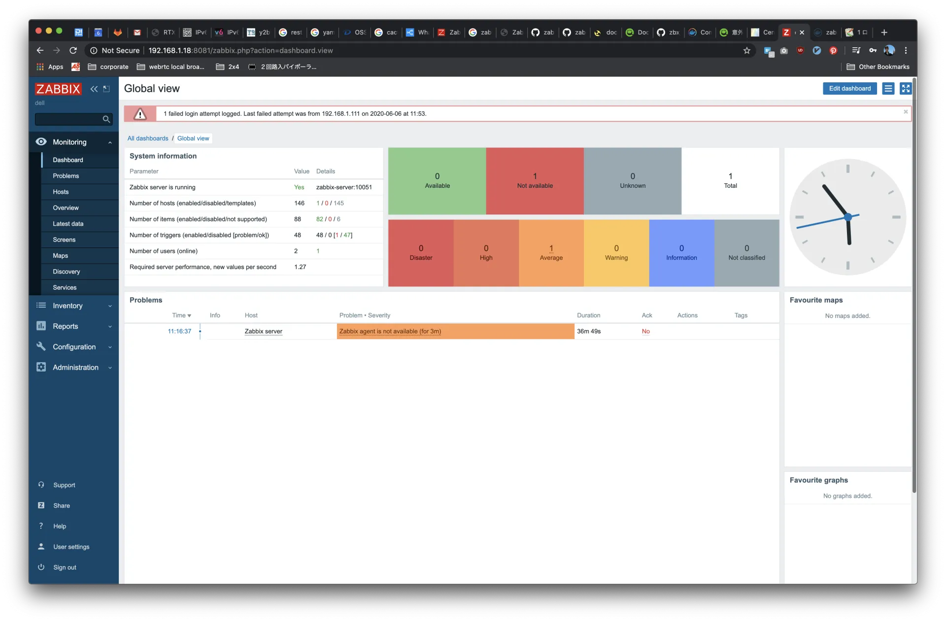 ユーザー名: Admin、パスワード:zabbix