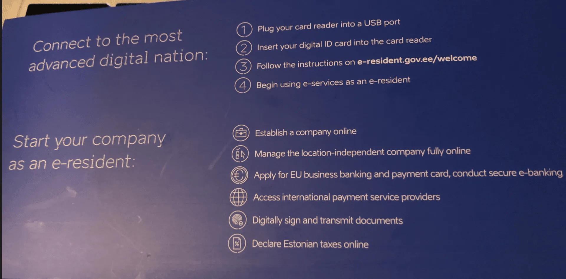 - エストニアのe-Residencyとは、外国人がエストニアの電子国民になれる制度です。このe-Residencyを使うことで、日本にいながらエストニアに会社を作れたり、銀行口座を開設できたりします。