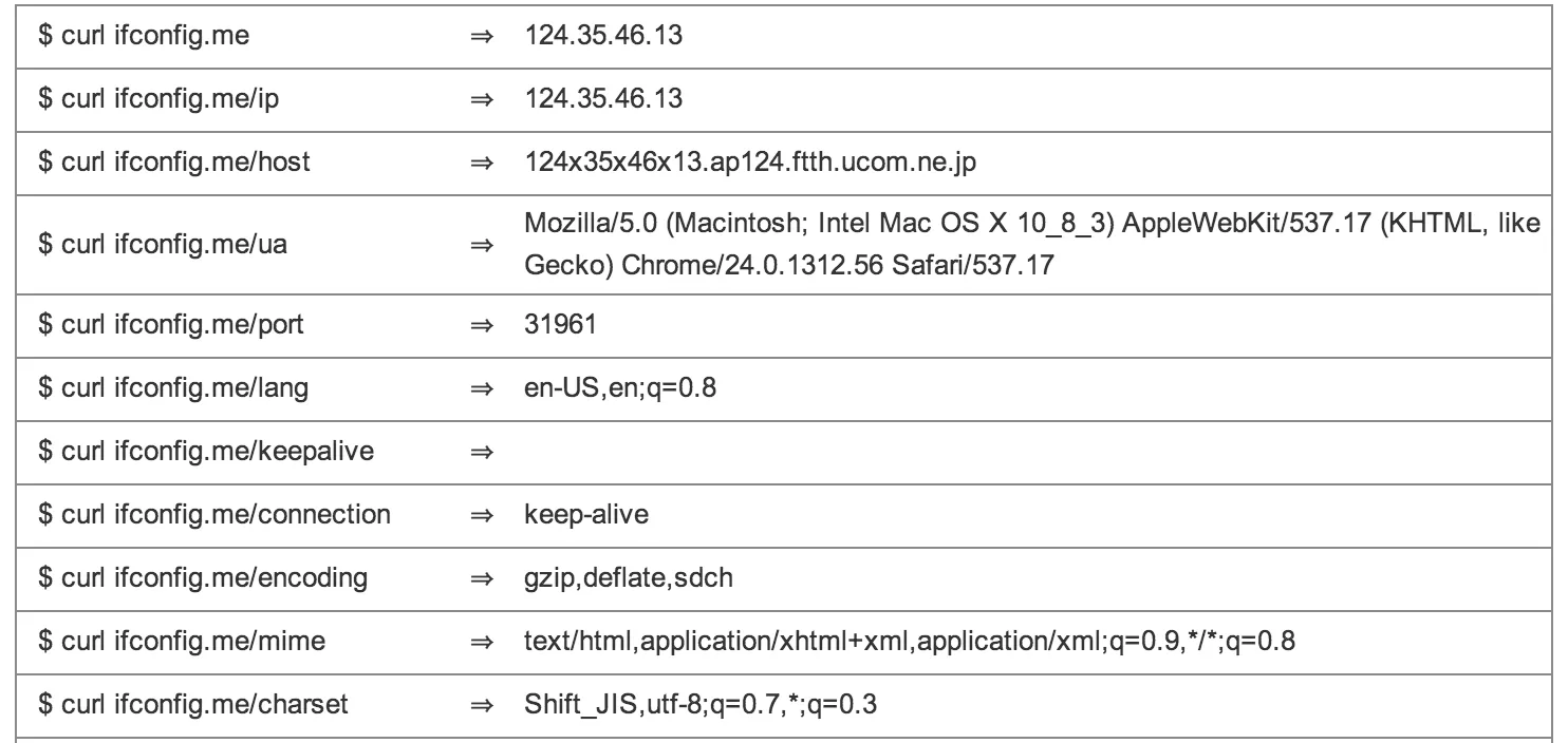 しかし、ifconfig.meがめちゃくちゃ遅い(10秒ぐらいかかる)ので、とりあえず自前で作りました。東京で運用しているので速いです。