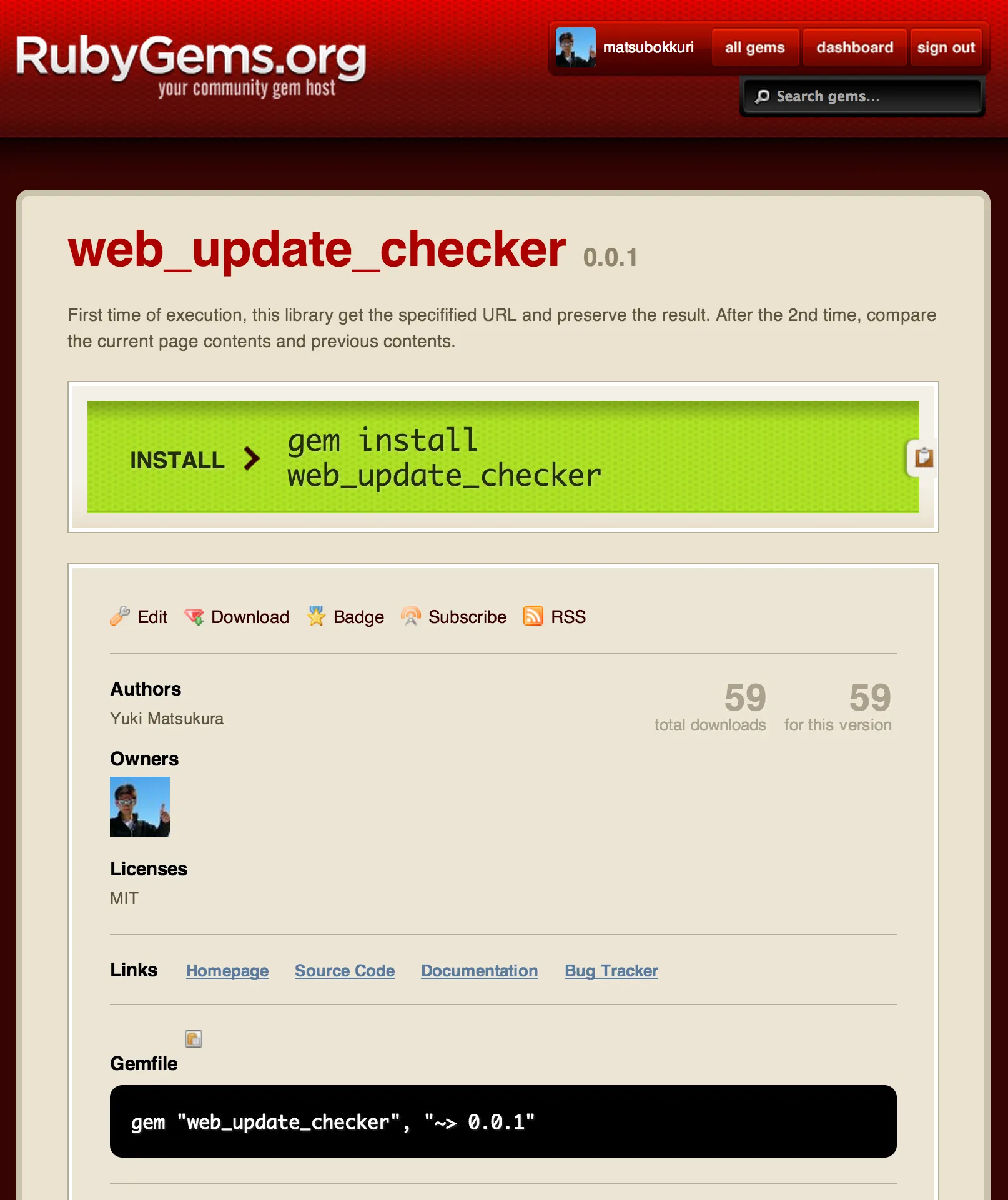 $ gem install web_update_checkerUsage