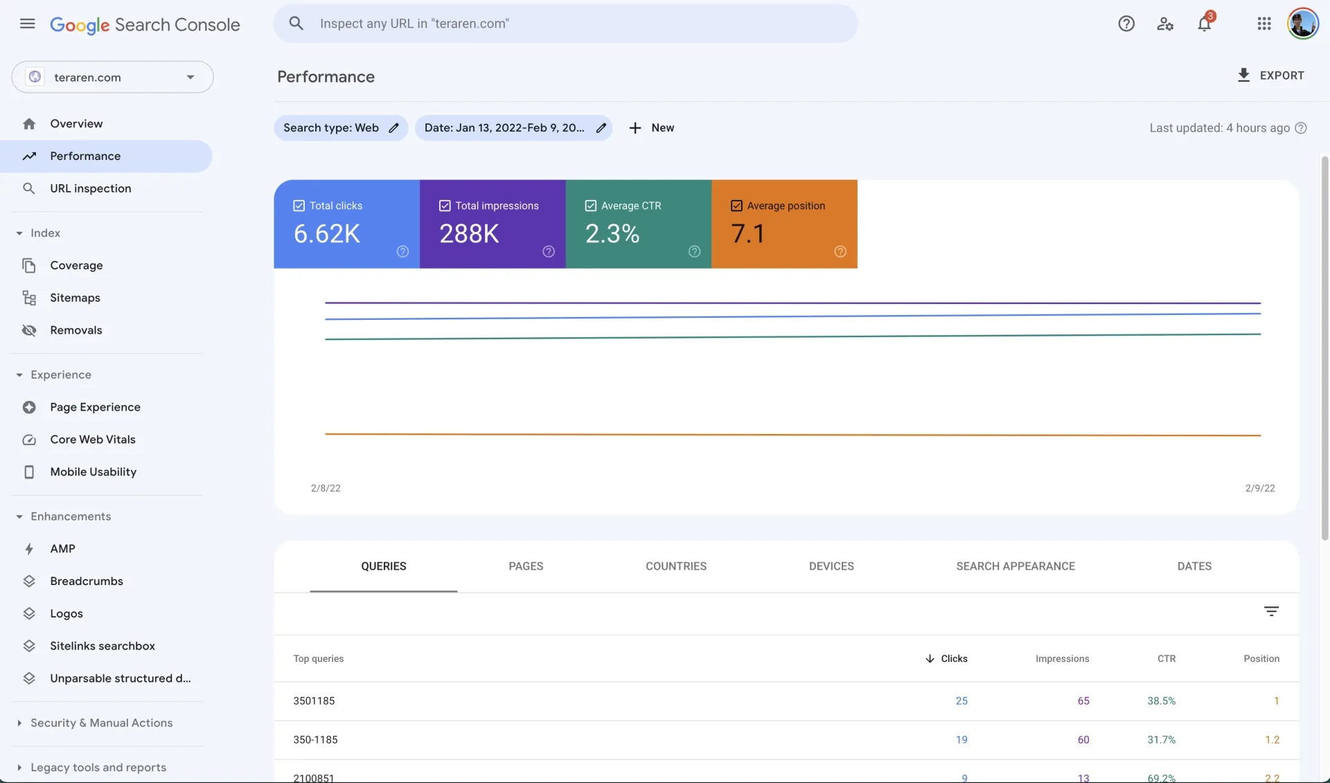 この統計情報は、Google Search Consoleに新たに1つ特別なプロファイルが作られて、そこから閲覧できるようになります。今まではホスト名単位でプロファイルが切られていましたが、このプロファイルは特殊でドメイン単位の統計が見られます。