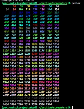 git clone git://git.savannah.gnu.org/screen.gitcd screen/src./configure --prefix=/usr/local --enable-colors256makesudo make install--enable-colors256 を忘れると残念なことになる。