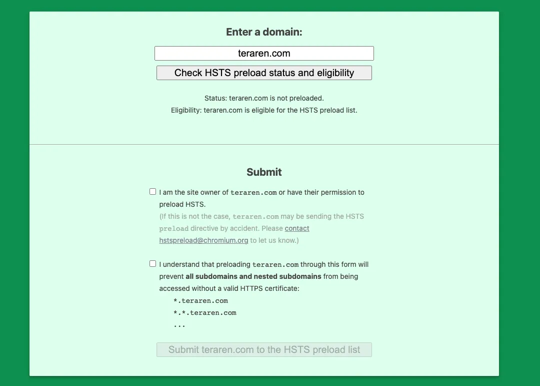 HSTSのpreloadに登録するためには要件が厳しいです。以下の3つを満たす必要があります。