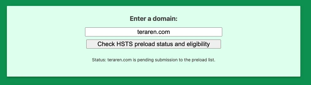 Header add Strict-Transport-Security "max-age=63072000; includeSubDomains; preload"対応ドメインの登録をする場合は以下のサイトでドメイン名を入力してSubmitします。