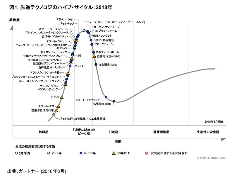ガートナー、先進テクノロジーのハイプサイクル2018年版