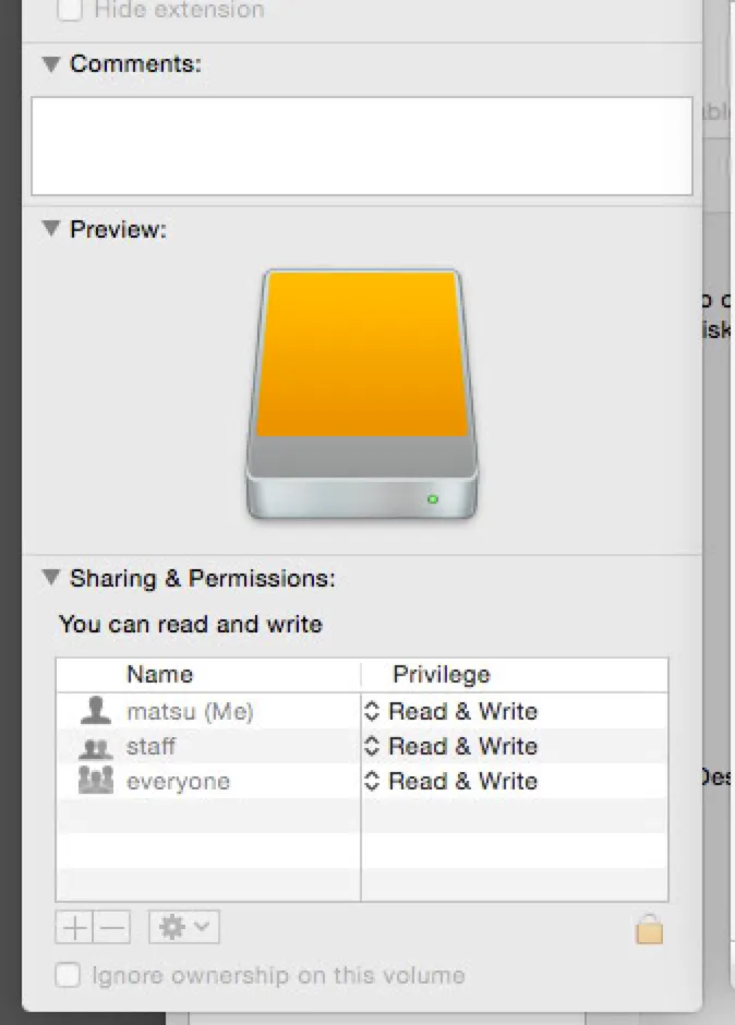 問題は、マウントされているVolumeを右クリックして表示される