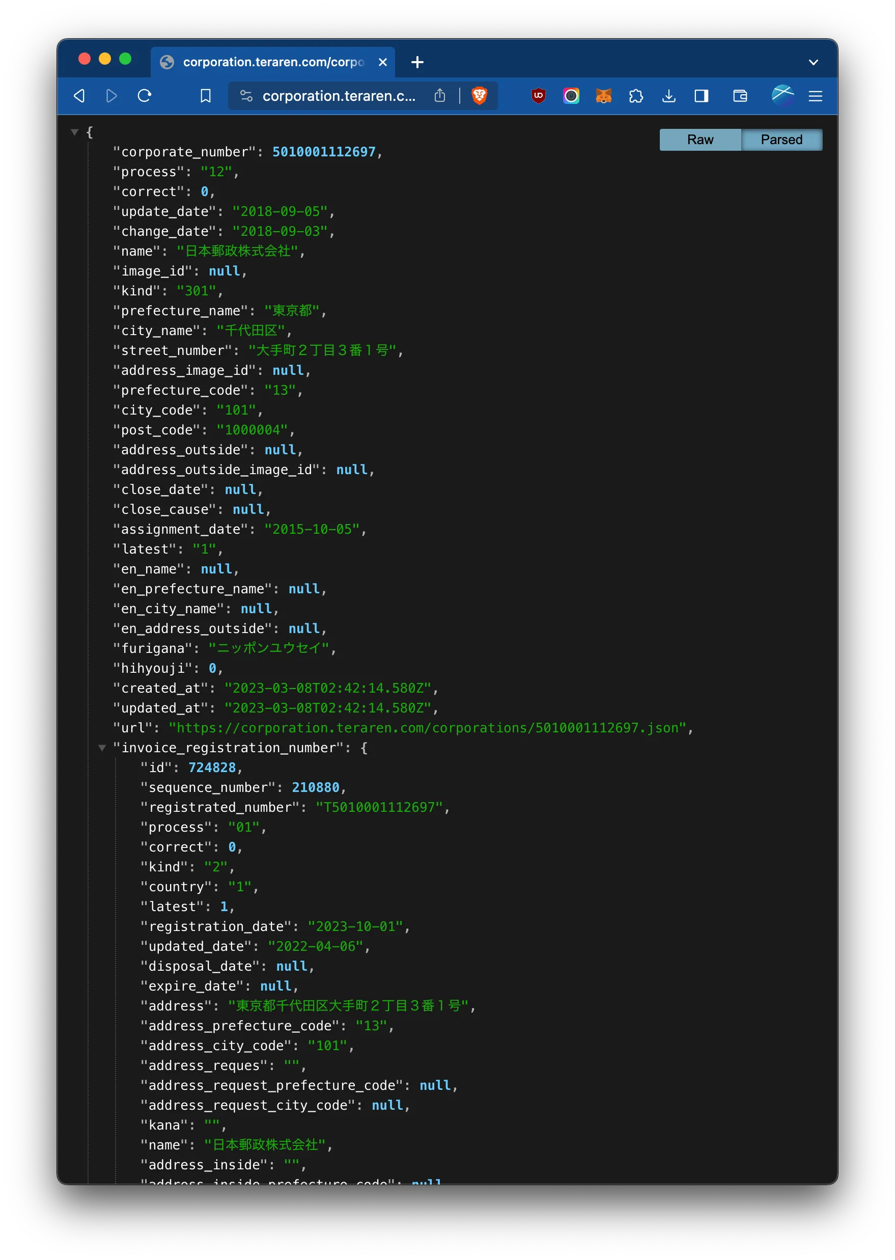 function getInvoiceRegistrationNumberFromCorporationNumber(corporation_number) { var url = 'https://corporation.teraren.com/corporations/' + corporation_number + '.json';