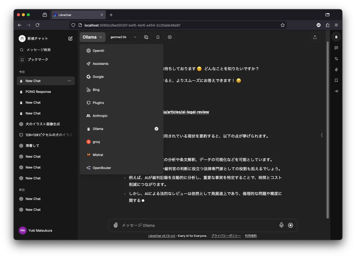 - LibreChat + Ollama (Gemma2)を使ってプライベートな LLM サービスを作ってみました。