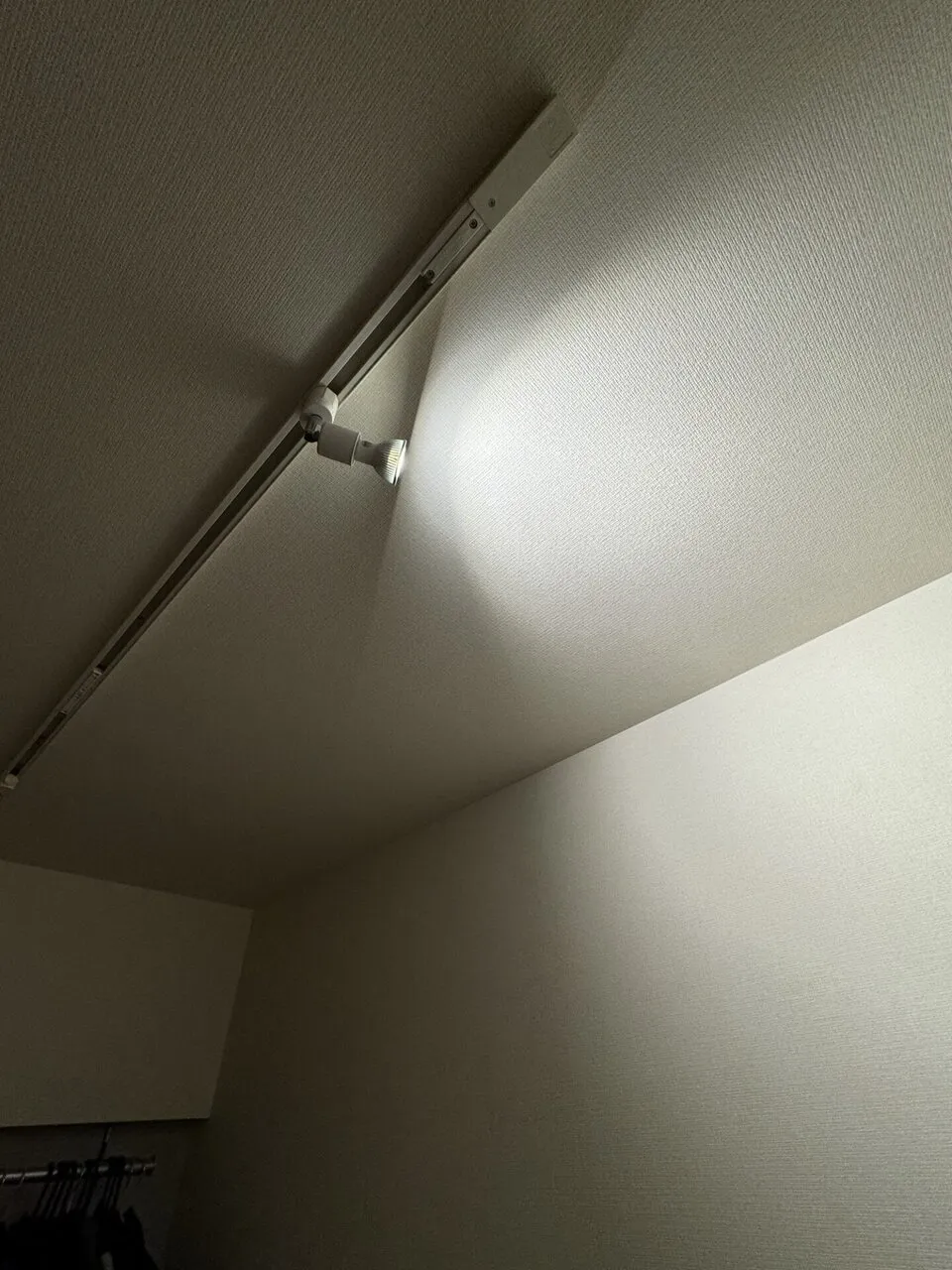 ということで、天井にダクトレールを設置して、調光できるようにしました。