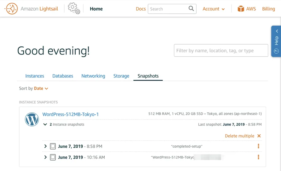 - スナップショットはインスタンス毎にグループ分けされて表示されます。