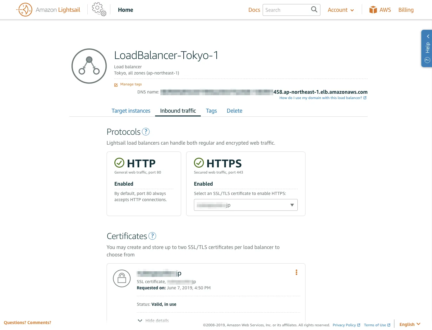 - この辺りから、AWSの囲い込みが始まりました。ロードバランサを登録するためには、Route53ではなく、LightsailのDNS zoneを使う必要があります。