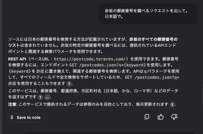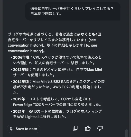 ブログの内容に関連した問い合わせをしてみます。 文章ではまとめてないけど拾ってきて理解してくれています。