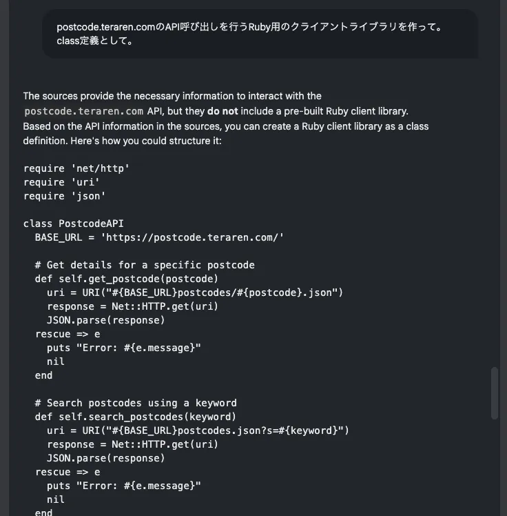 API問い合わせのためのRubyクライアントライブラリを書かせてみました。良い感じに作ってくれました。