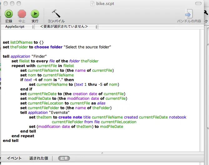 以下のスクリプトを「アップルスクリプトエディタ」にペーストします。