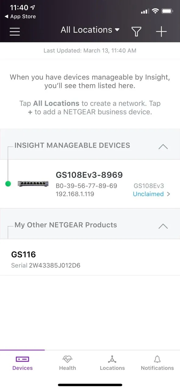 - Netgear Insightアプリで設定できるみたいだから、挑戦してみたら機材はちゃんと見えており、アプリからIPアドレスを設定しました。そしたら、二度と見えなくなりました。