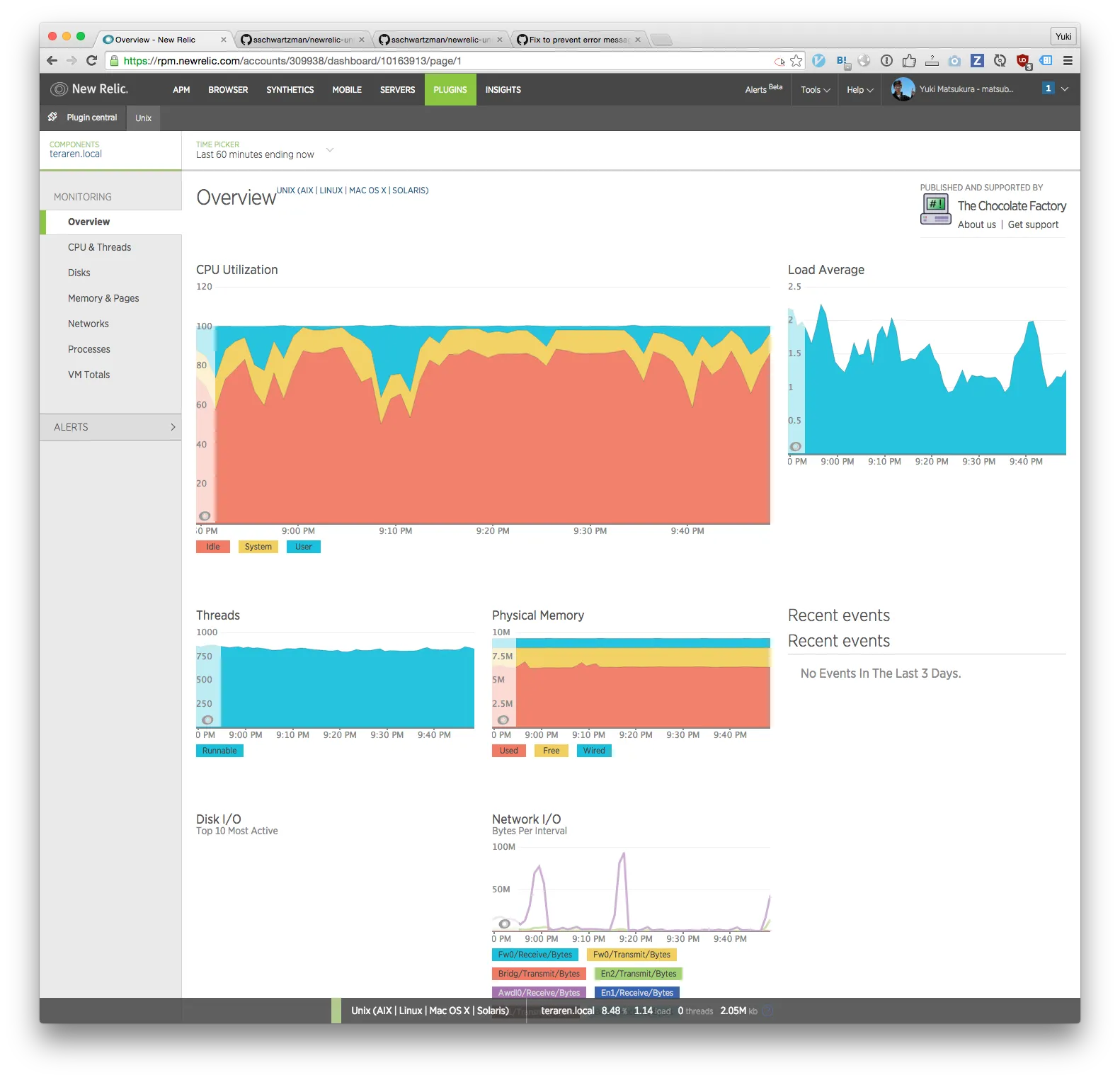 - UNIX用プラグインを使って、Mac OS XをNewrelicで監視しました。