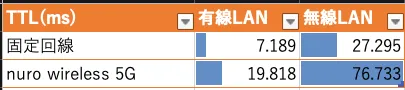 nuro 5G Wirelessのほうが3倍近くTTLが遅いです。