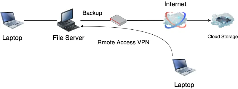 このワークフローで問題になるのは、ファイルサーバ自体がリスクヘッジされていないのでサーバ自体の物理セキュリティ(火事や地震など)が確保されていないことです。このファイルを地理的に遠い場所に安全に保管しておきたいです。