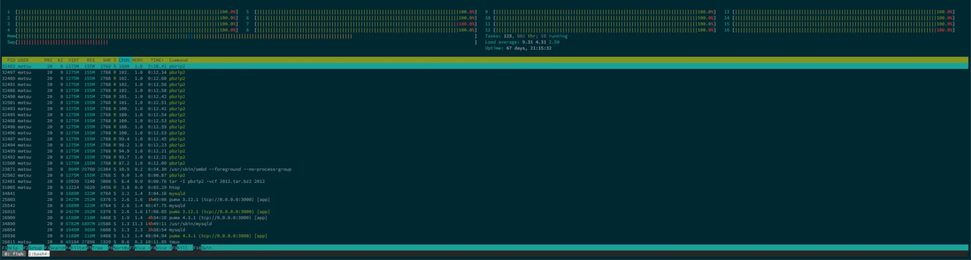pbzip2で圧縮中