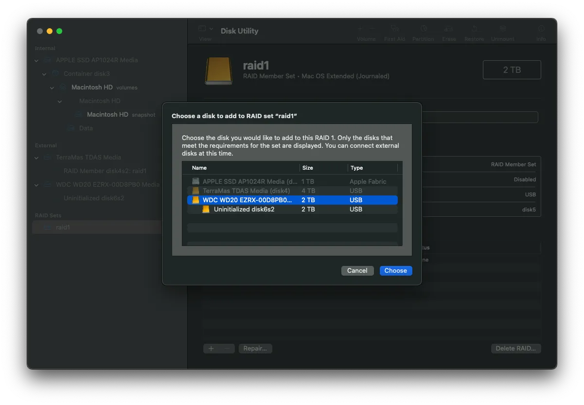 TerraMasterを使ってMacOSでソフトウェアRaid1環境を構築してみる