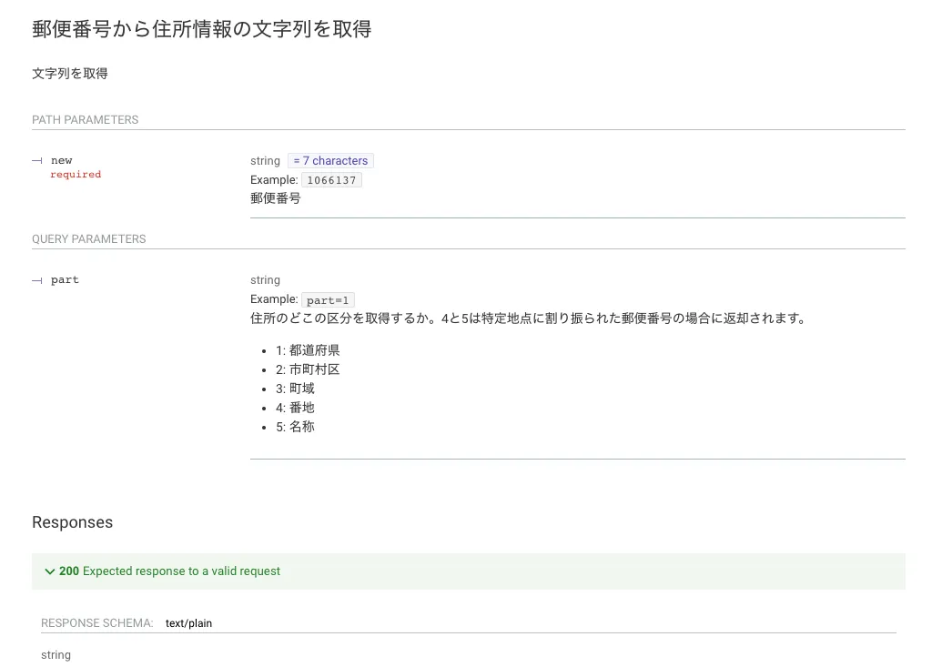 住所の全体ではなく、一部だけを取得したい場合はpartパラメータを付与します。