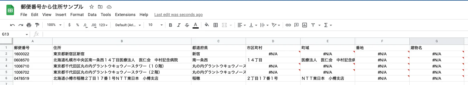 ExcelやGoogle Spreadsheetで郵便番号から住所を補完