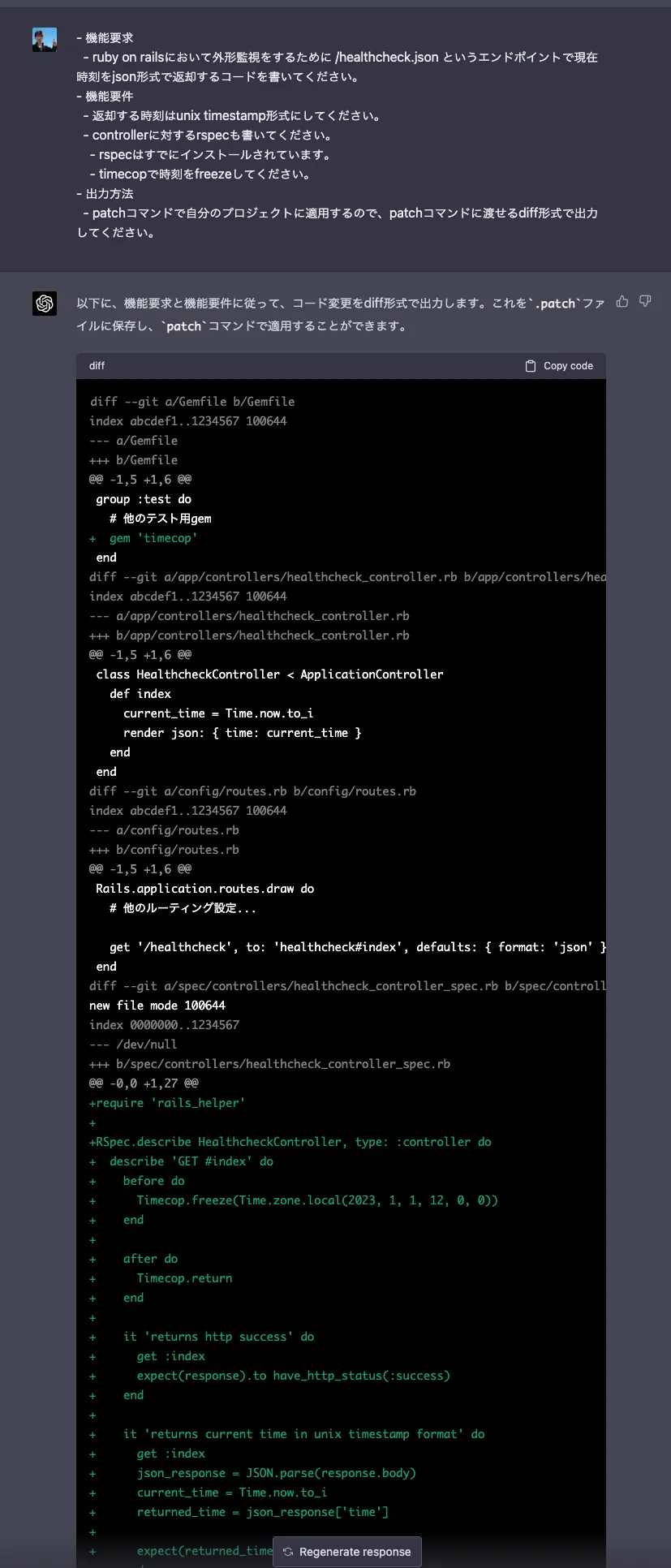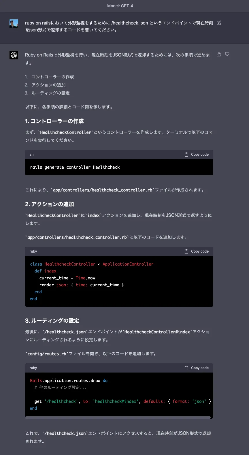 GPT-4を使って既存のRailsアプリケーションにヘルスチェック機能追加をしてみる
