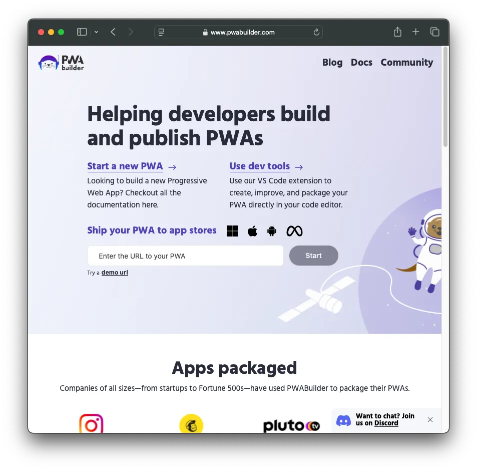 PWA Builder というサイトを使うと PWA 対応しているサイトから iOS, Android 向けのアプリパッケージを作ってくれるサイトがあります。