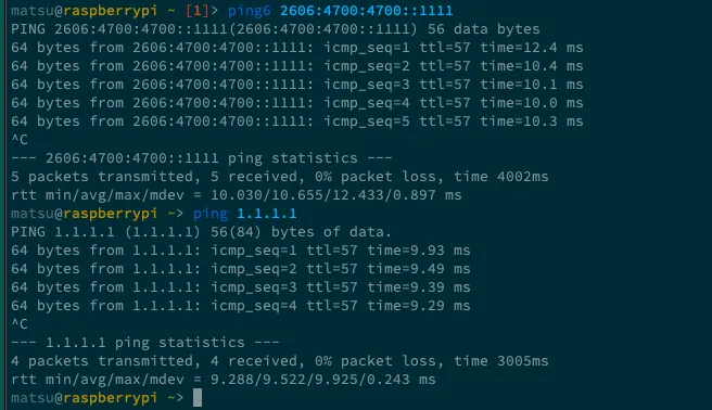IPv6, IPv4で接続性があるかを動作確認