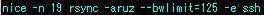 % nice -n 19 rsync -aruz --bwlimit=125 -e ssh [local] [remote]おまけ