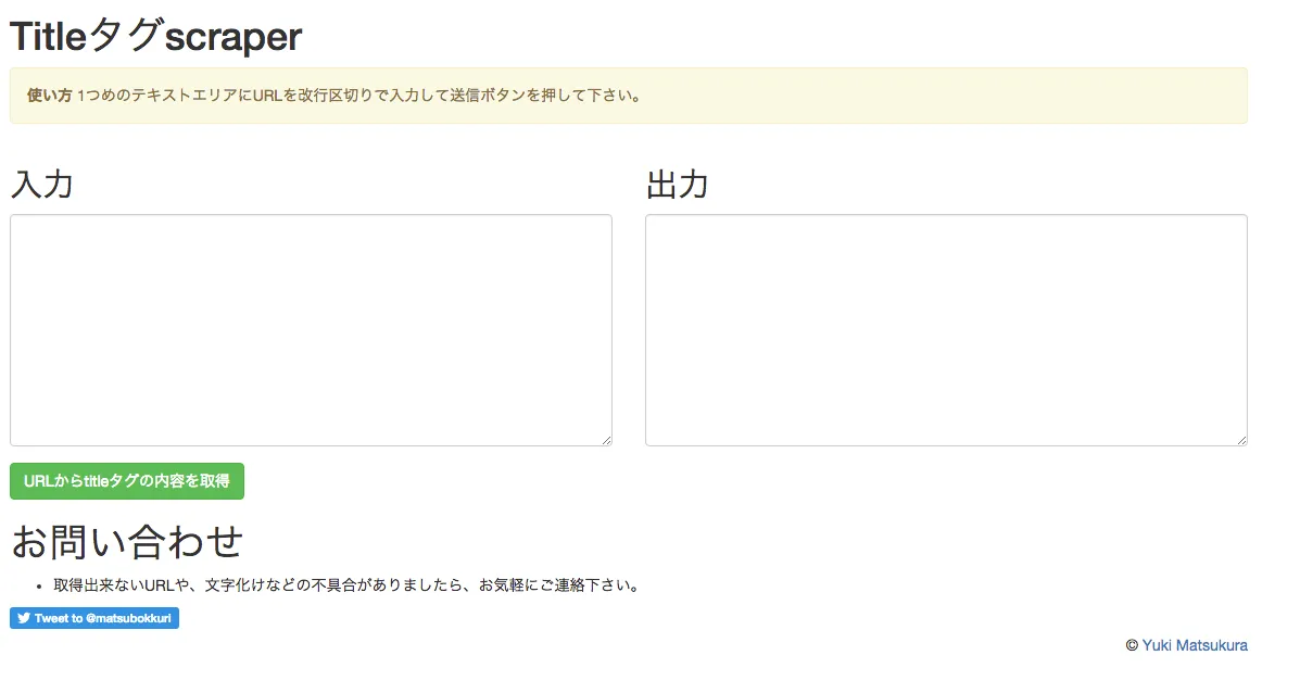 URL一覧からタイトルタグを抜き出すツールを作ってみました。 https://matsu.teraren.com/static/scrape_title/