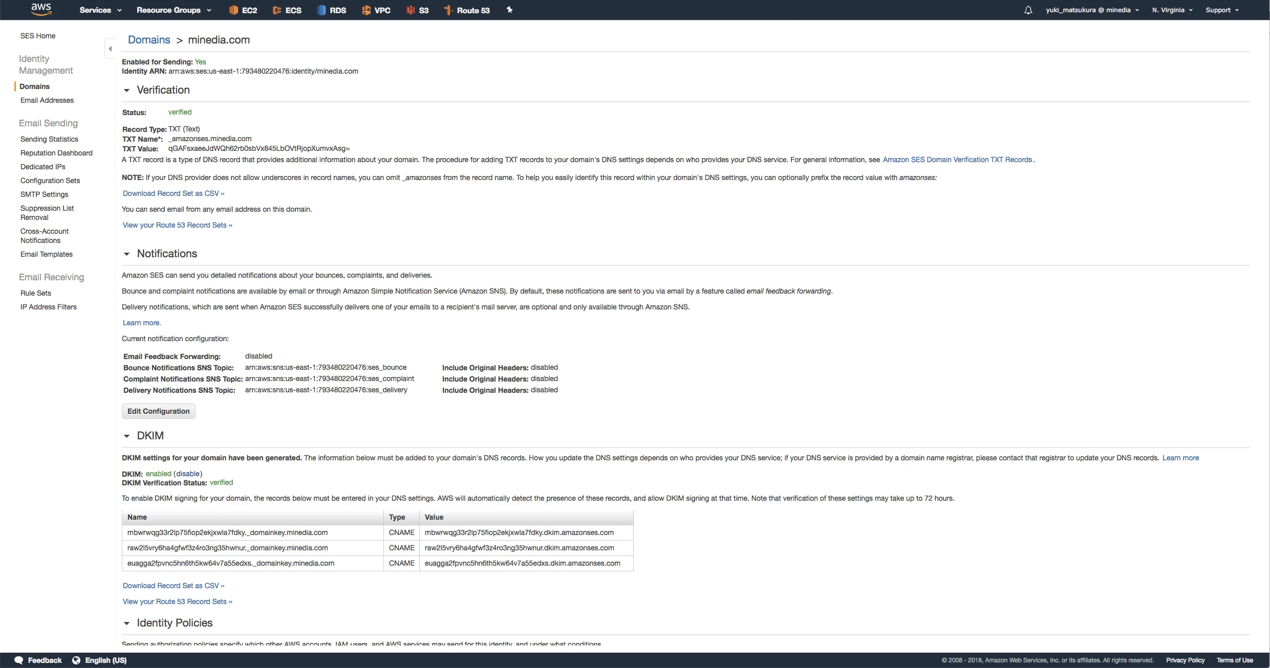 $ aws --profile minedia --region us-east-1 ses send-email \ --subject "success" \ --text "ses mail bounce body" SES -> SNS -> SQS -> Lambda -> DynamoDB