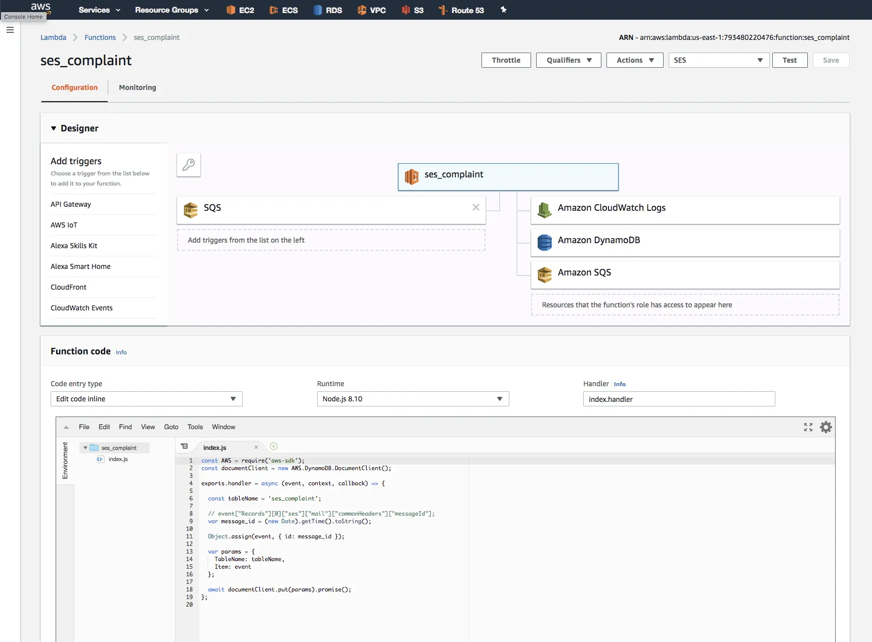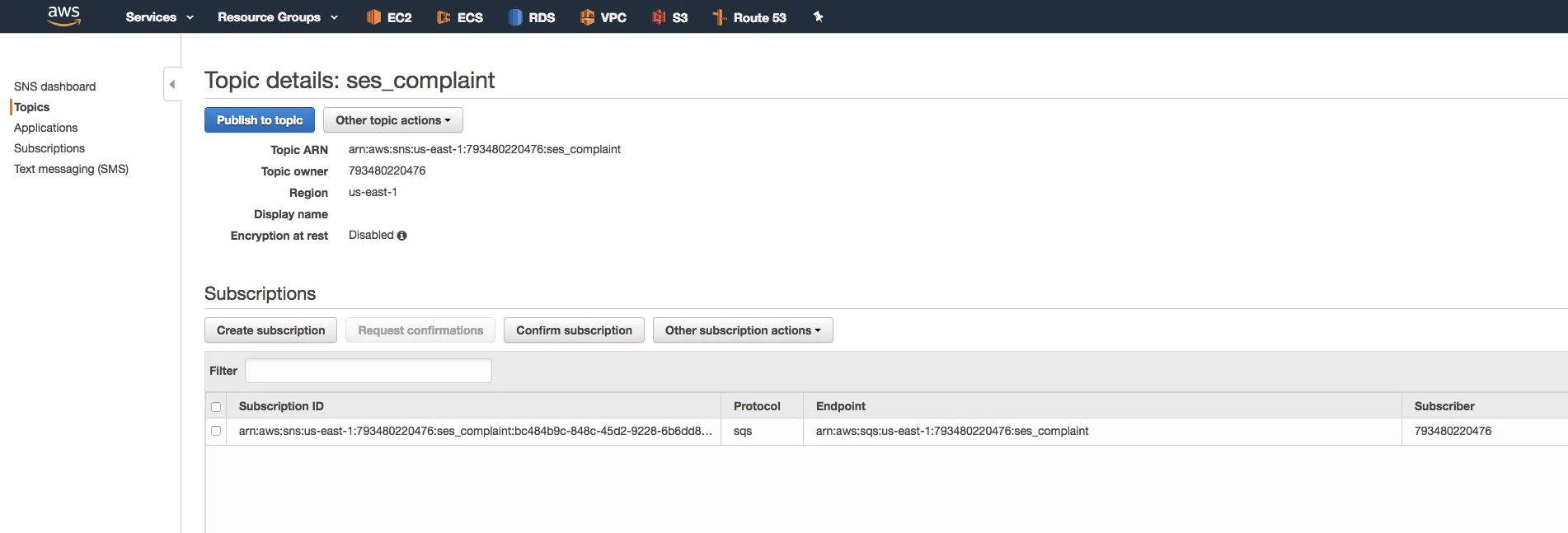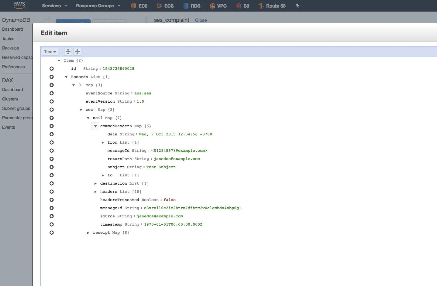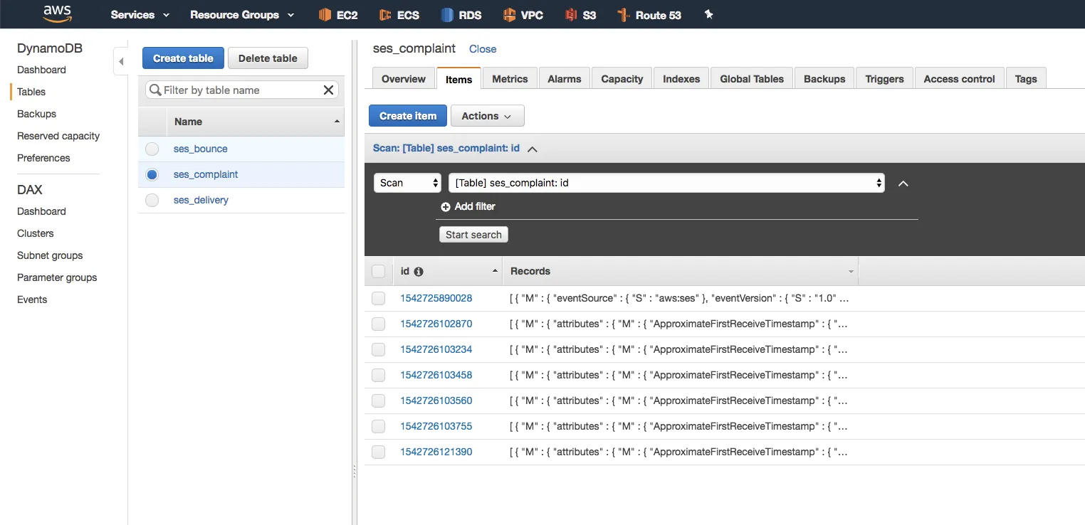 await documentClient.put(params).promise();};$ aws --profile minedia --region us-east-1 ses send-email \ --subject "complaint" \ --text "ses mail complaint body"