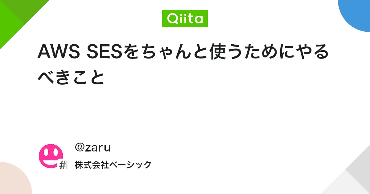 AWS SESをちゃんと使うためにやるべきこと - Qiita qiita.com AWS SESをちゃんと使う AWS SESは安価で簡単にメールの送信/受信トリガーが実現できるサービスです。AWSを使っているサービスの場合、けっこう使うことになると思います。が、ハマりどころや注意すべき所があるため、サービスの特性を理解して使ったほうが良いと思い、まと...