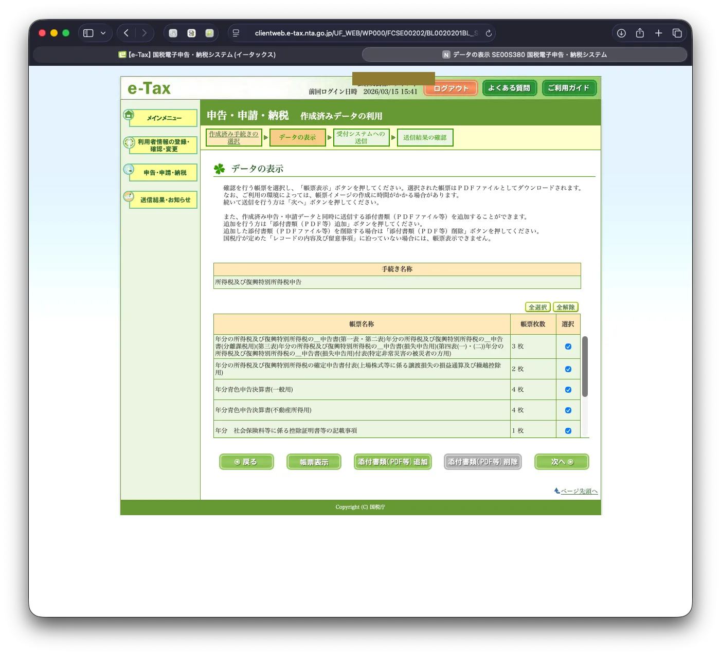 - e-Tax送信(Safari必須のためブラウザ自動操作不可)