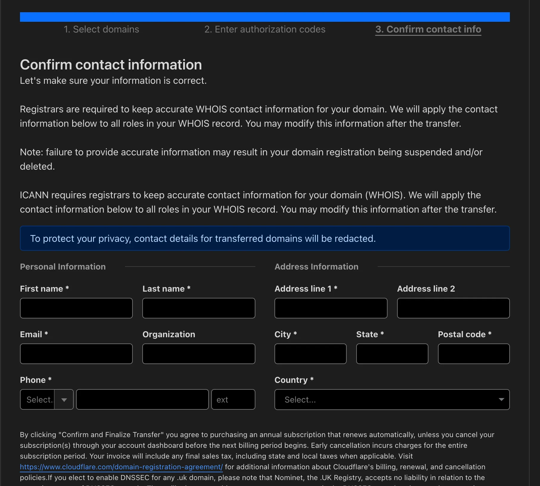 Cloudflare ではドメイン保管料を 卸値で販売しているとのことです。 ということで、Cloudflare に移管します。