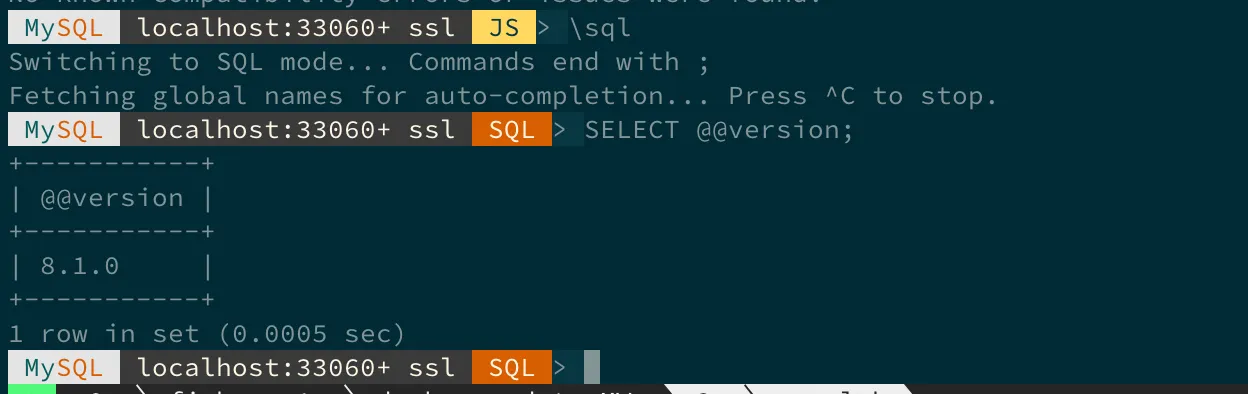 動いているサーバがMySQL 8.1かをチェック