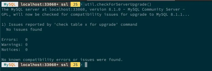 MySQL 8.1へのアップグレード事前チェック